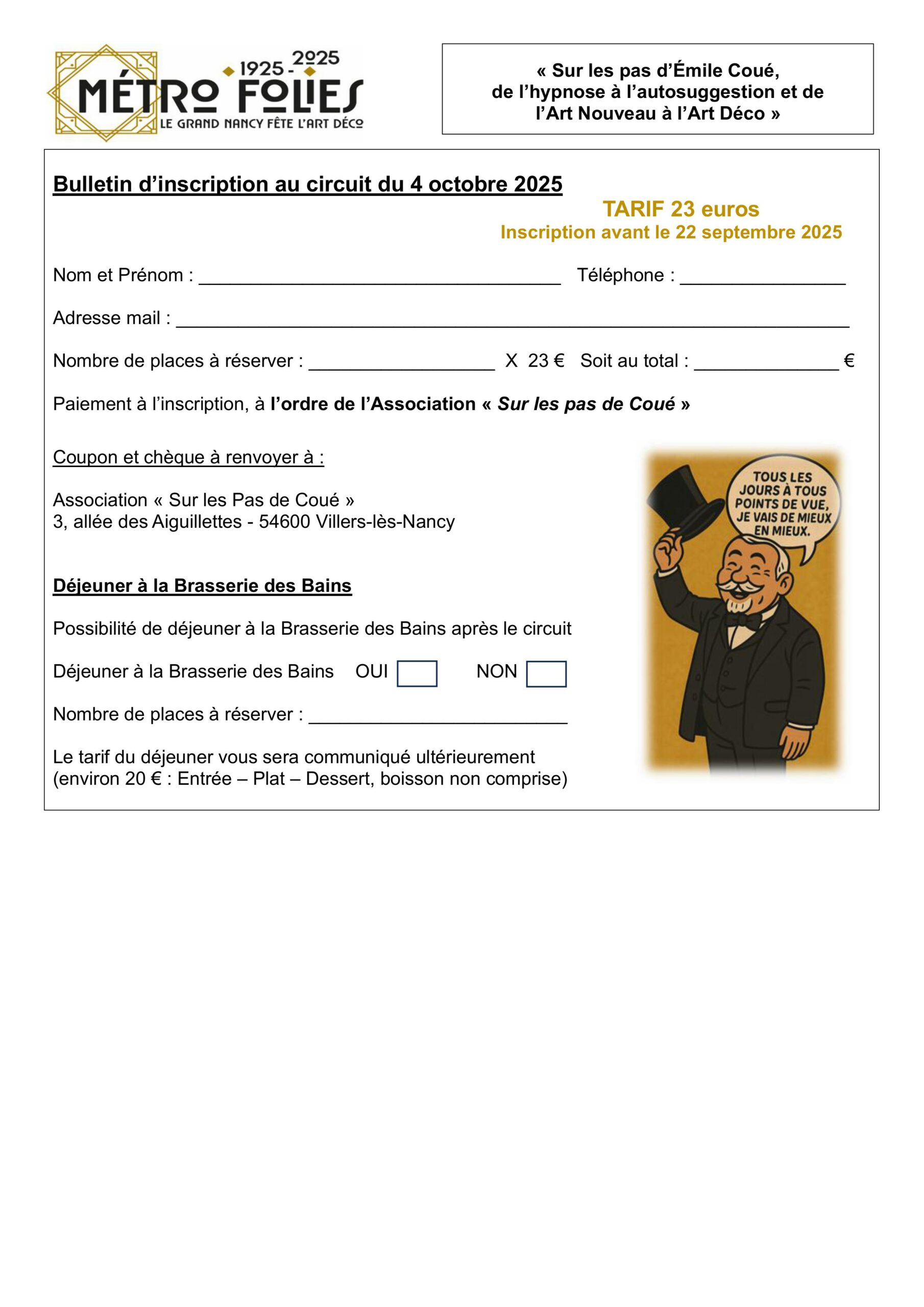 ✓ Faire connaître le parcours d’Émile Coué, Pharmacien et Psychologue, né le 26 février 1857 à Troyes et mort à Nancy le 2 juillet 1926